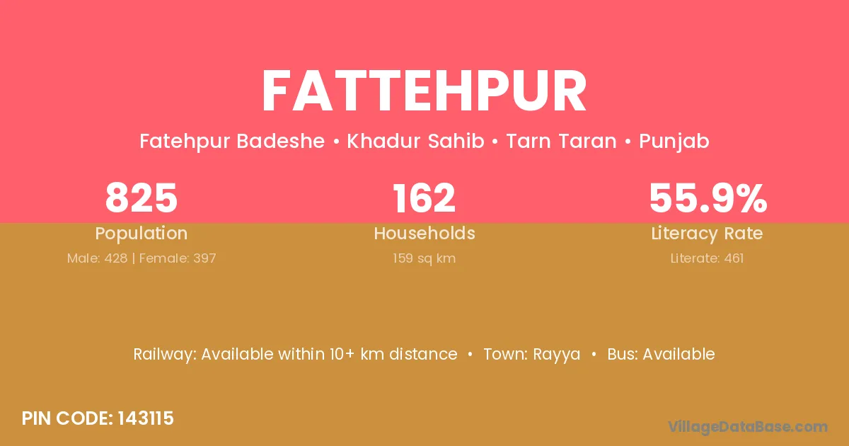 Fattehpur village has a total population of 4,102 people, of which 2,247 are males and 1,855 are females.