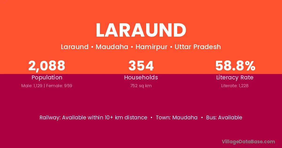 Maudaha is the nearest town to Laraund village for major economic activities