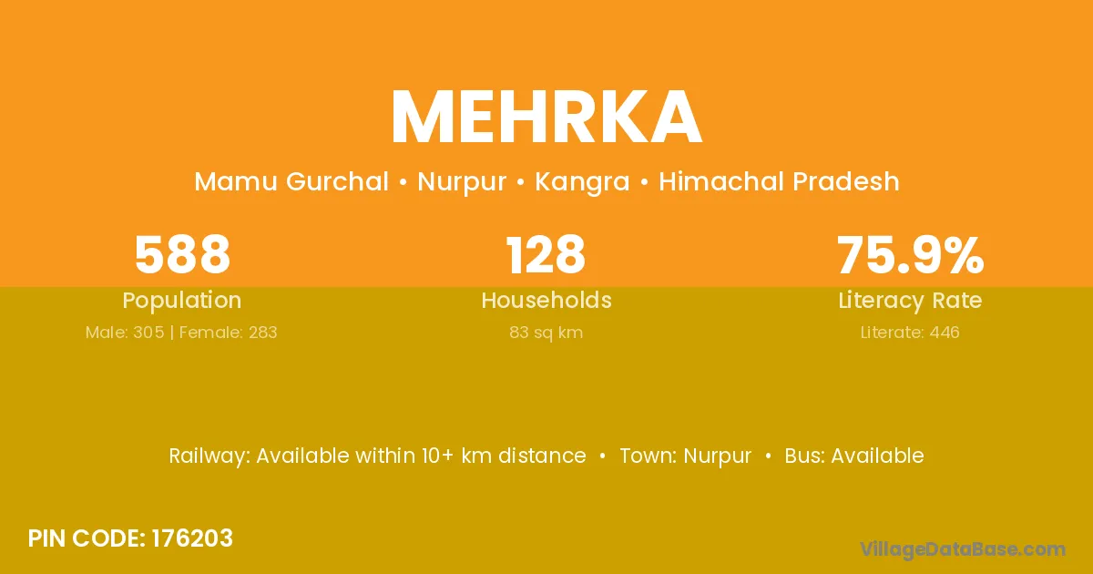 Maudaha (12 km) is the nearest town to Mehrka village for major economic activities and is located approximately 12 km away.