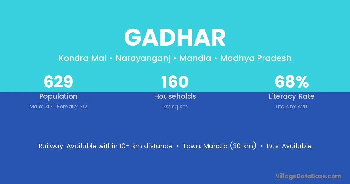 Gadhar village has a total population of 623 people, of which 320 are males and 303 are females.