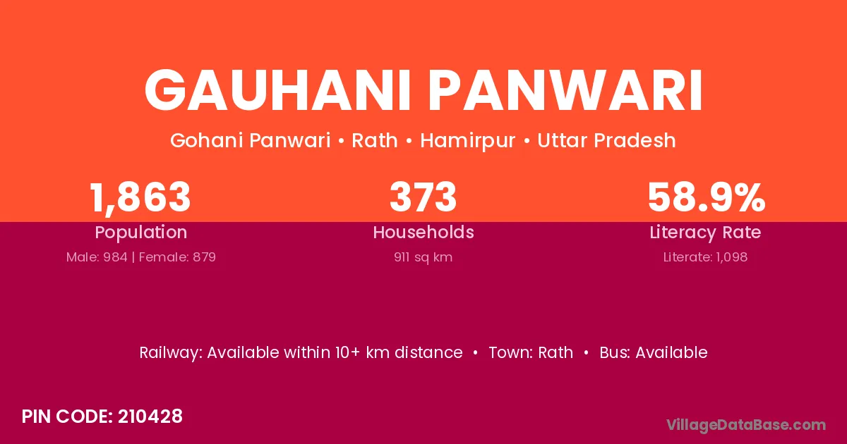 Gauhani Panwari village has a total population of 1,863 people, of which 984 are males and 879 are females.