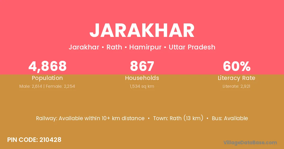 Rath (13 km) is the nearest town to Jarakhar village for major economic activities and is located approximately 13 km away.