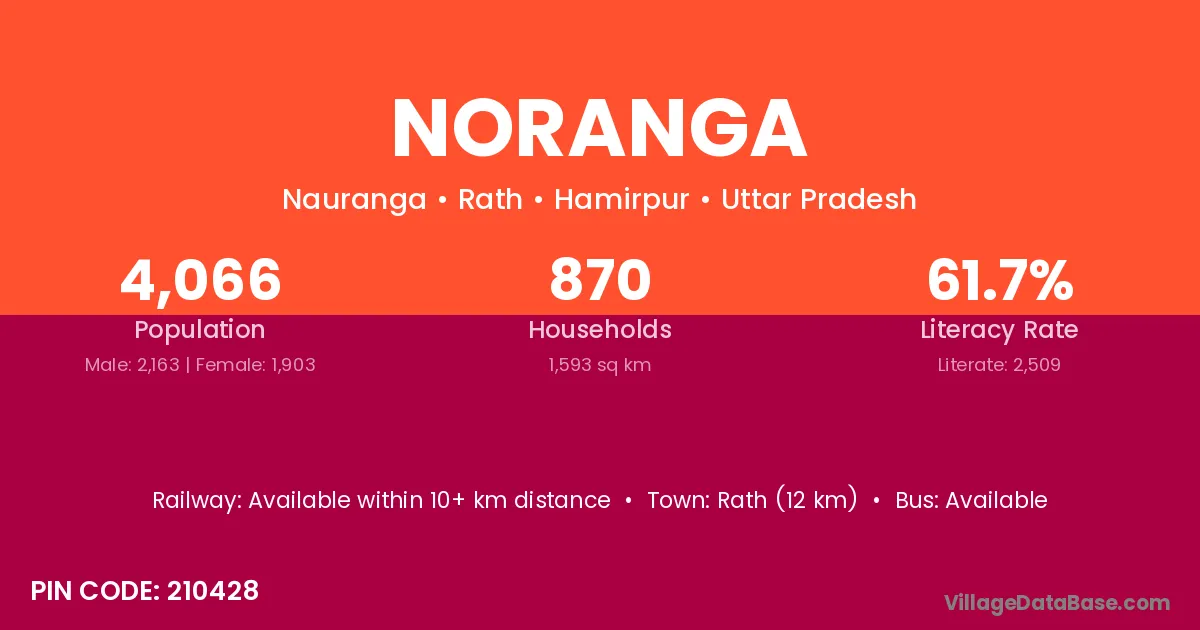 Rath (12 km) is the nearest town to Noranga village for major economic activities and is located approximately 12 km away.