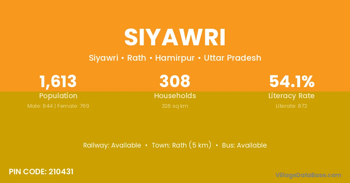 Rath (5 km) is the nearest town to Siyawri village for major economic activities and is located approximately 5 km away.