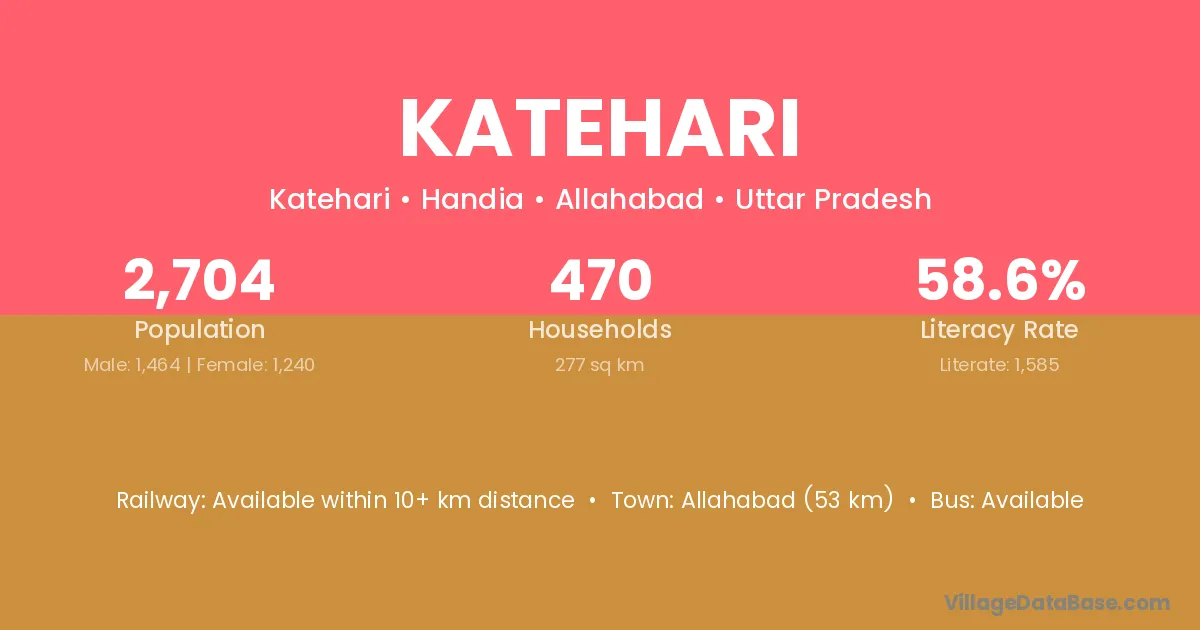Sarila (25 km) is the nearest town to Katehari village for major economic activities and is located approximately 25 km away.