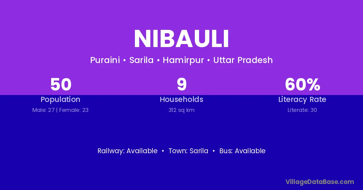 Nibauli village has a total population of 50 people, of which 27 are males and 23 are females.