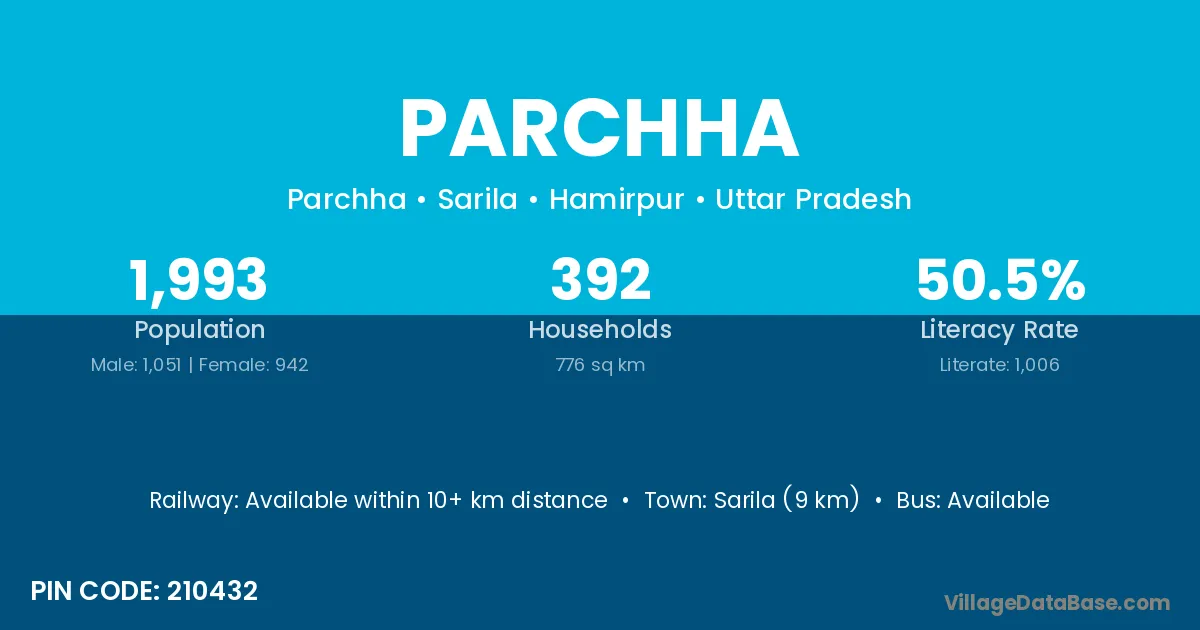 Sarila (9 km) is the nearest town to Parchha village for major economic activities and is located approximately 9 km away.