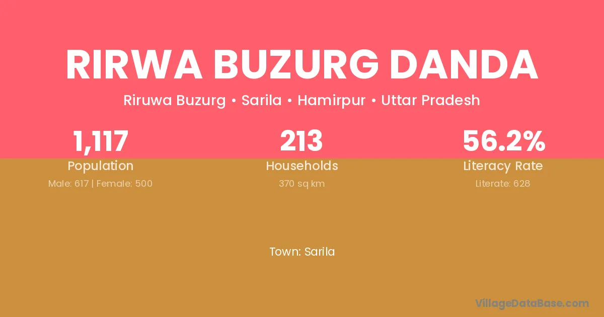 Rirwa Buzurg Danda village has a total population of 1,117 people, of which 617 are males and 500 are females.