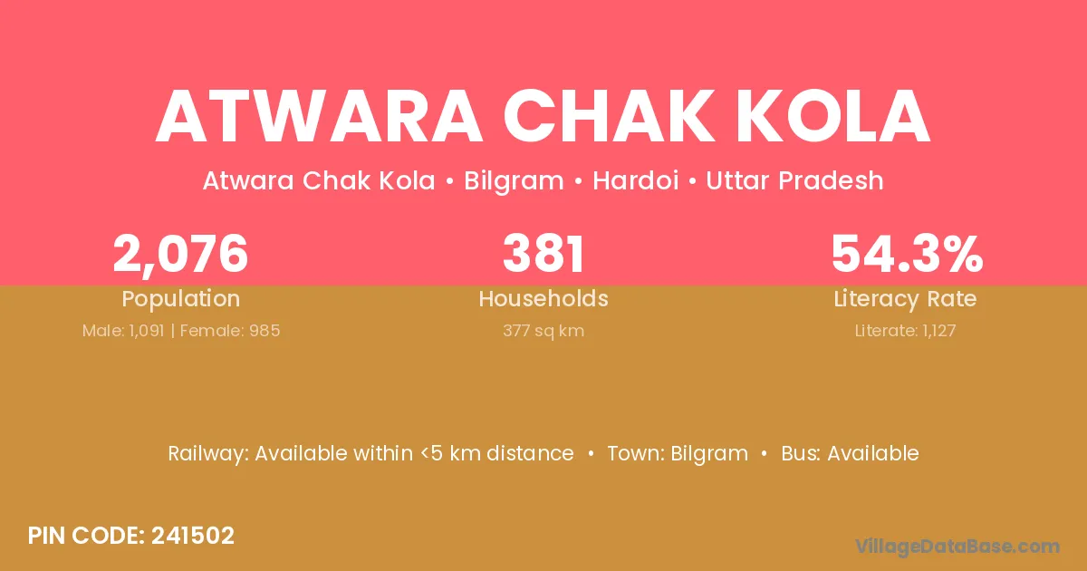 Bilgram is the nearest town to Atwara Chak Kola village for major economic activities