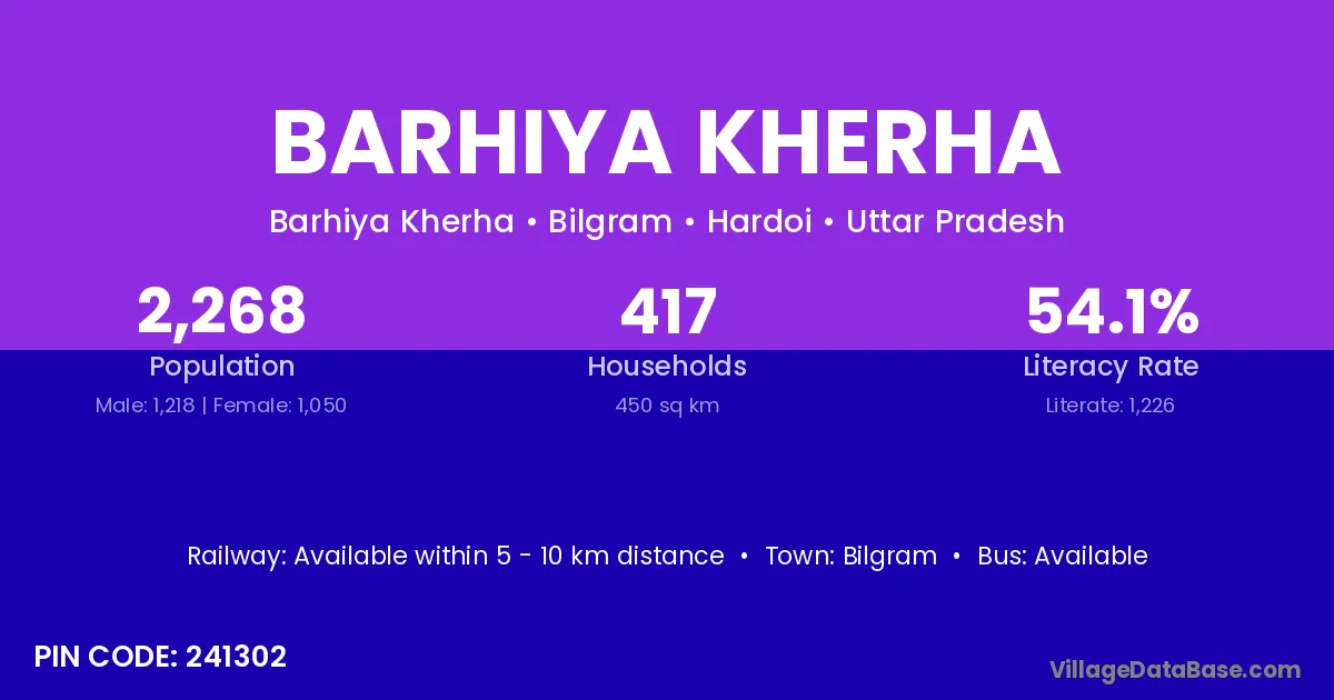 Bilgram is the nearest town to Barhiya Kherha village for major economic activities