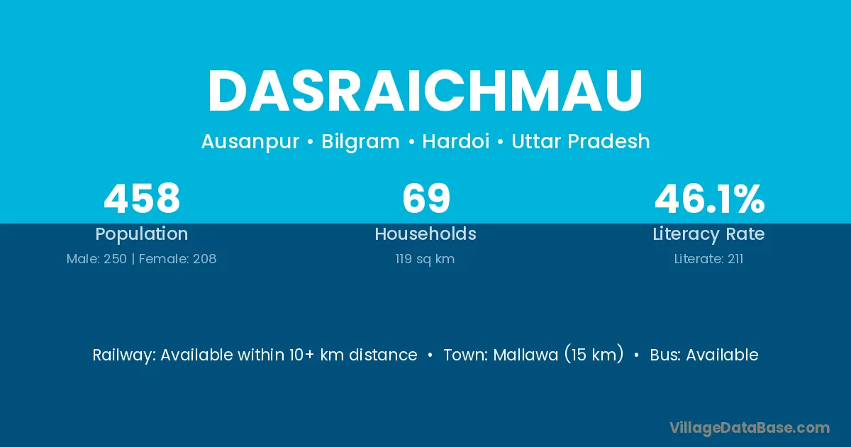 Mallawa (15 km) is the nearest town to Dasraichmau village for major economic activities and is located approximately 15 km away.