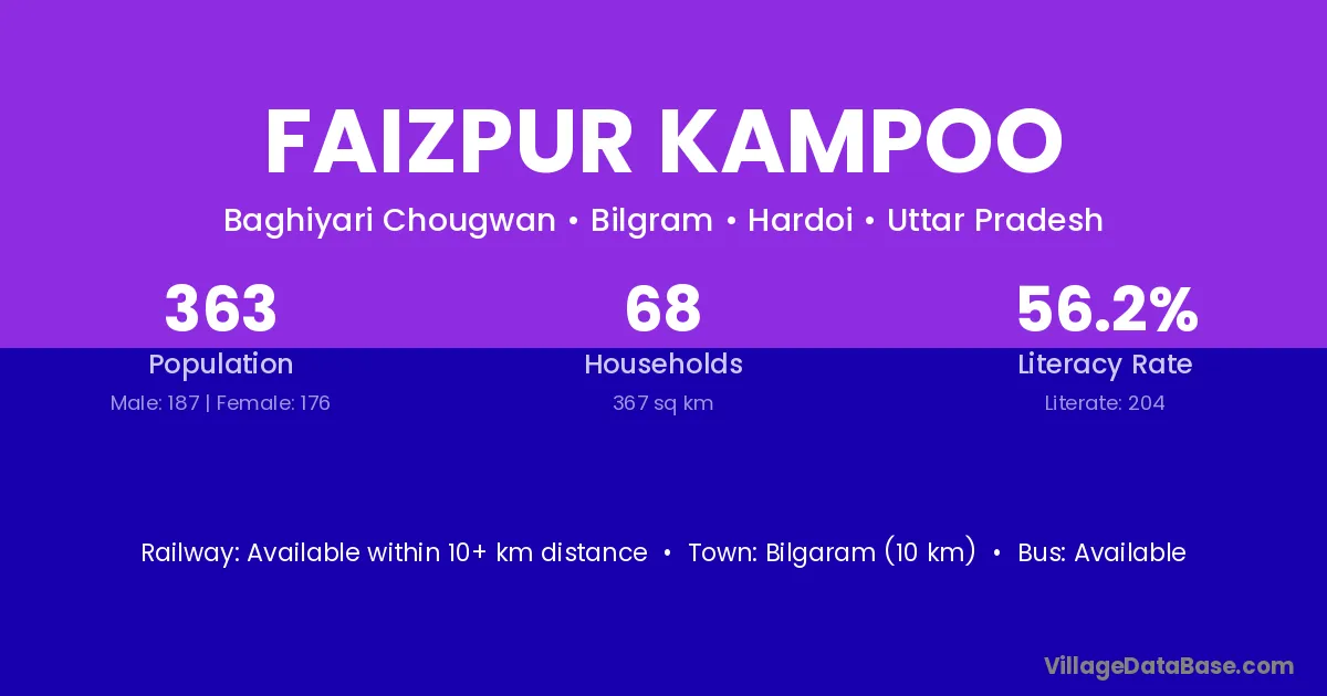 Faizpur Kampoo village has a total population of 363 people, of which 187 are males and 176 are females.
