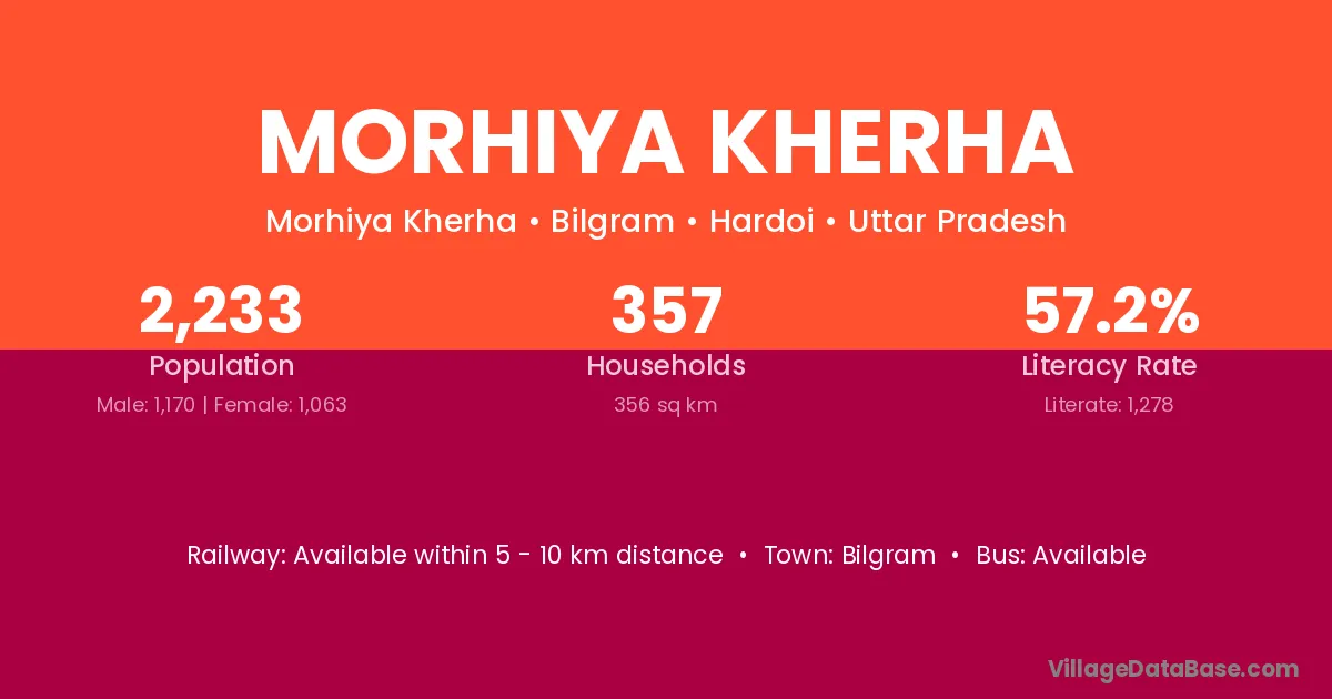 Morhiya Kherha village has a total population of 2,233 people, of which 1,170 are males and 1,063 are females.