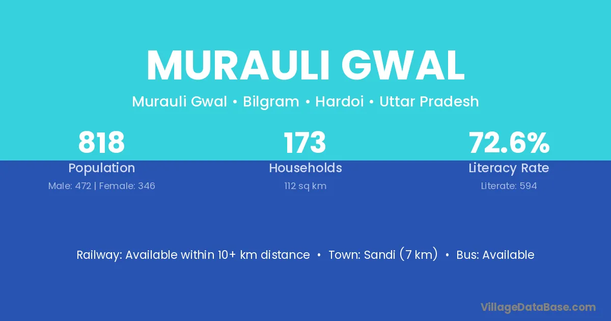 Sandi (7 km) is the nearest town to Murauli Gwal village for major economic activities and is located approximately 7 km away.