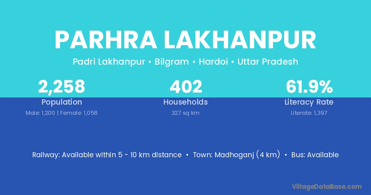 Madhoganj (4 km) is the nearest town to Parhra Lakhanpur village for major economic activities and is located approximately 4 km away.