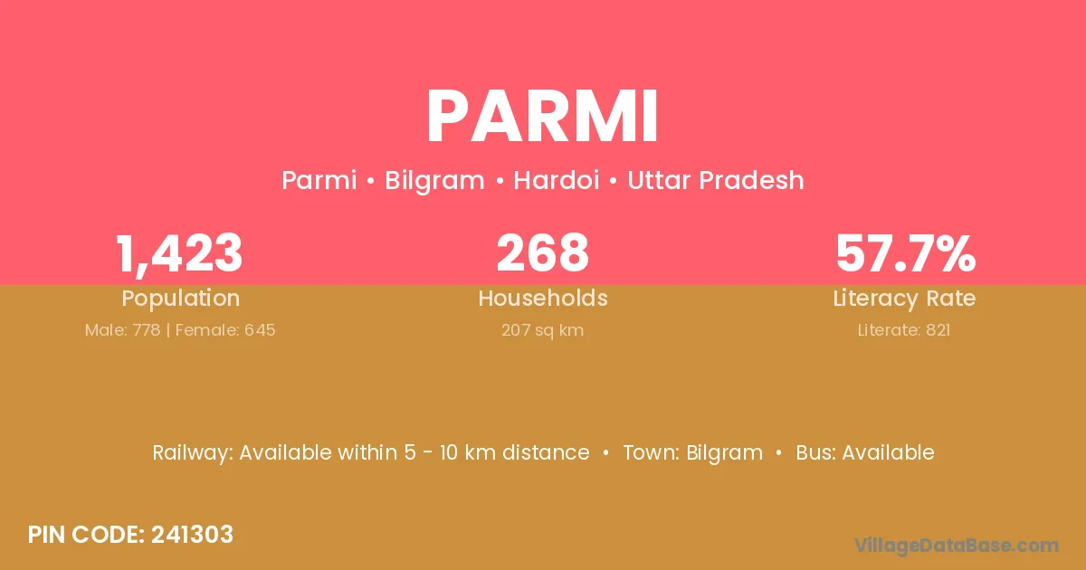 Parmi village is located in the Bilgram Tehsil of the Hardoi district in Uttar Pradesh .