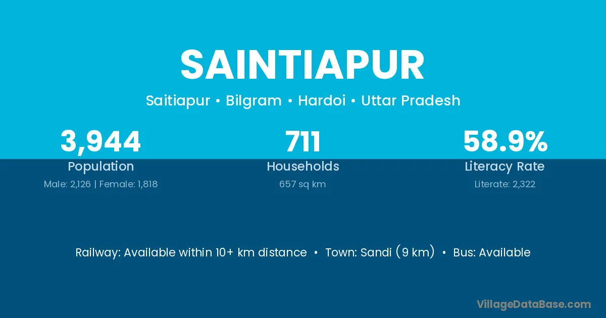 Saintiapur village has a total population of 3,944 people, of which 2,126 are males and 1,818 are females.