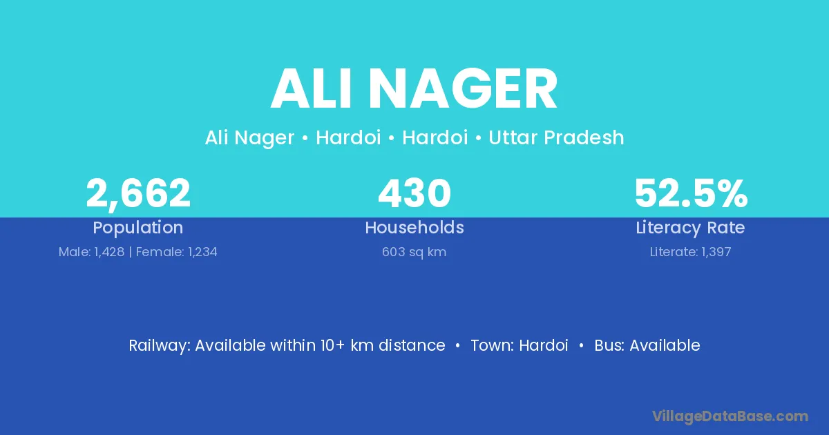 Hardoi is the nearest town to Ali Nager village for major economic activities