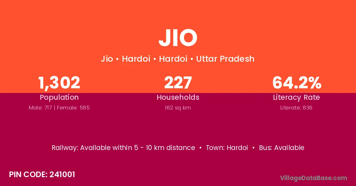 Hardoi is the nearest town to Jio village for major economic activities