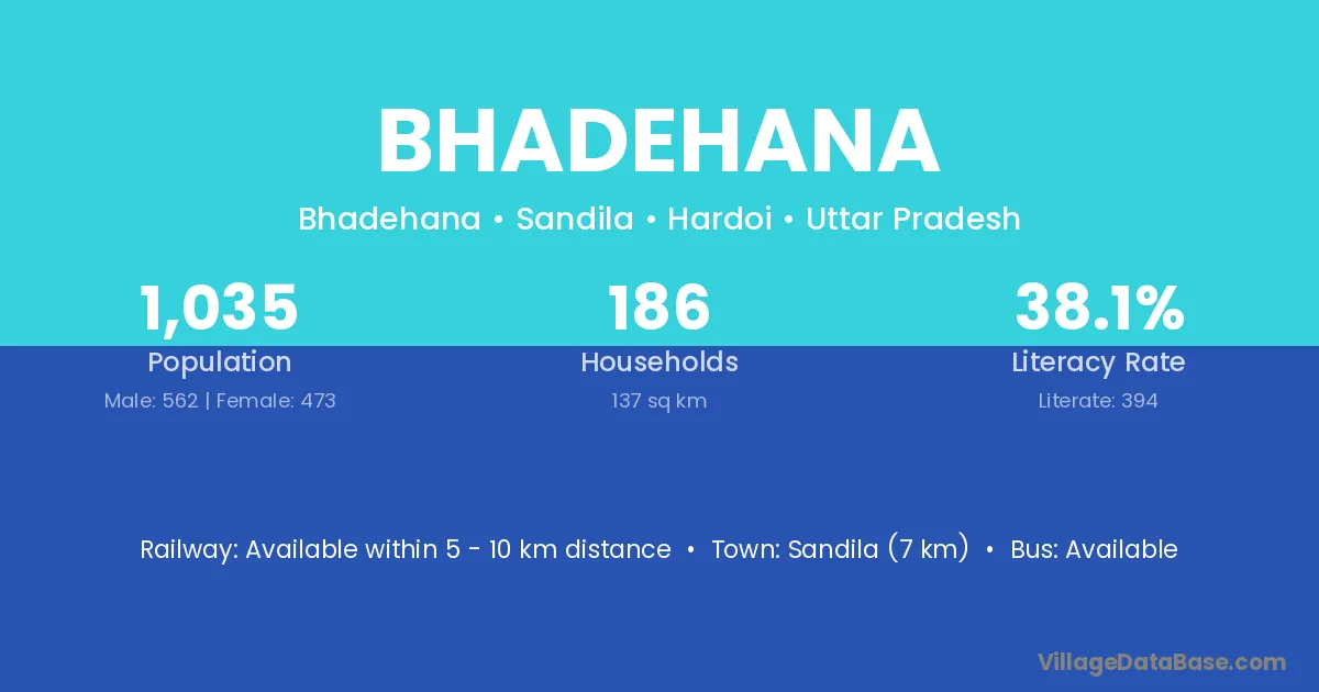 Sandila (7 km) is the nearest town to Bhadehana village for major economic activities and is located approximately 7 km away.