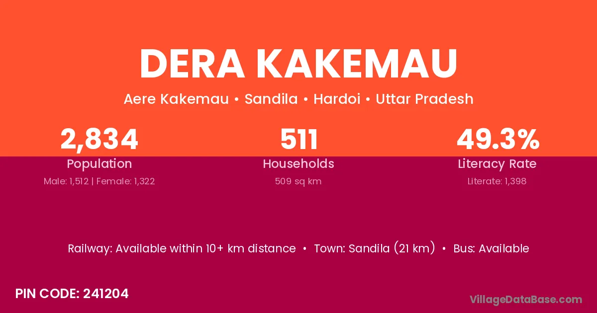 Sandila (21 km) is the nearest town to Dera Kakemau village for major economic activities and is located approximately 21 km away.