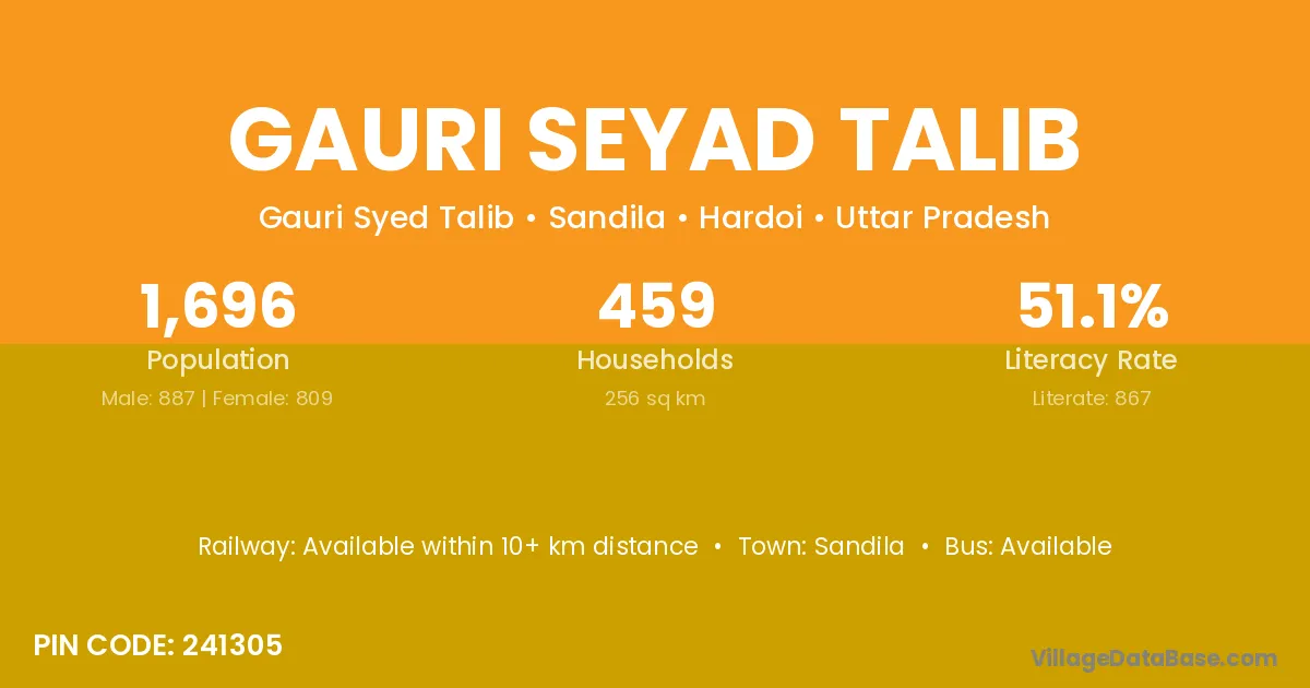 Gauri Seyad Talib village has a total population of 1,696 people, of which 887 are males and 809 are females.