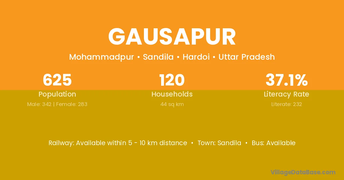 The literacy rate of Gausapur village is 37.12%. Male literacy stands at 45.03% and female literacy at 27.56%.
