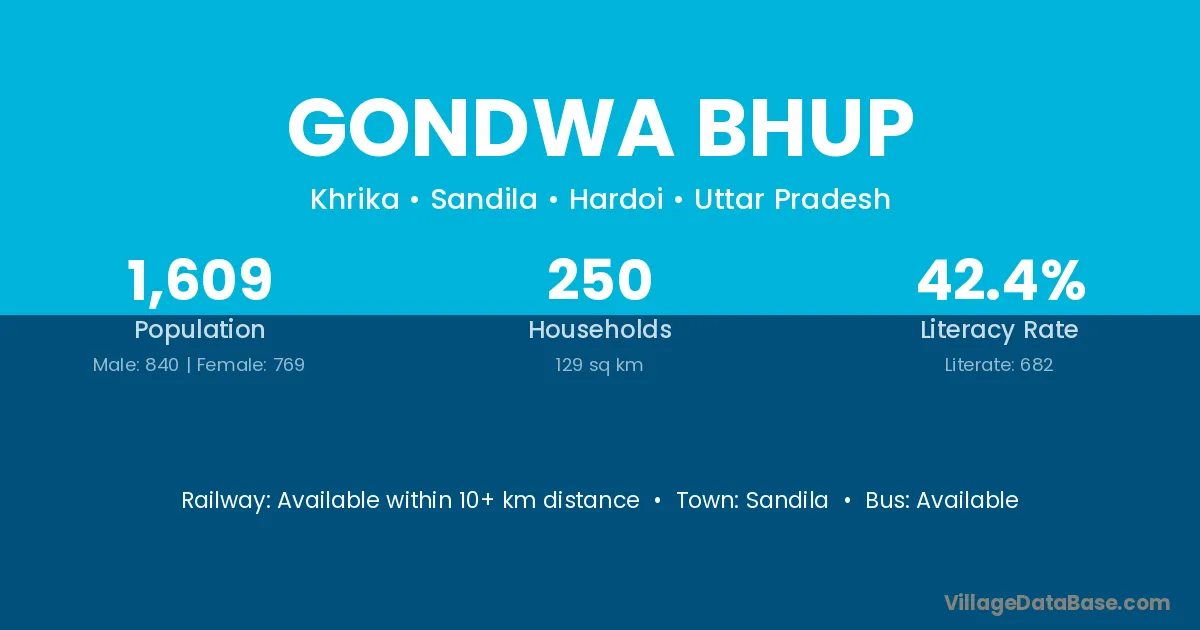 Gondwa Bhup village has a total population of 1,609 people, of which 840 are males and 769 are females.