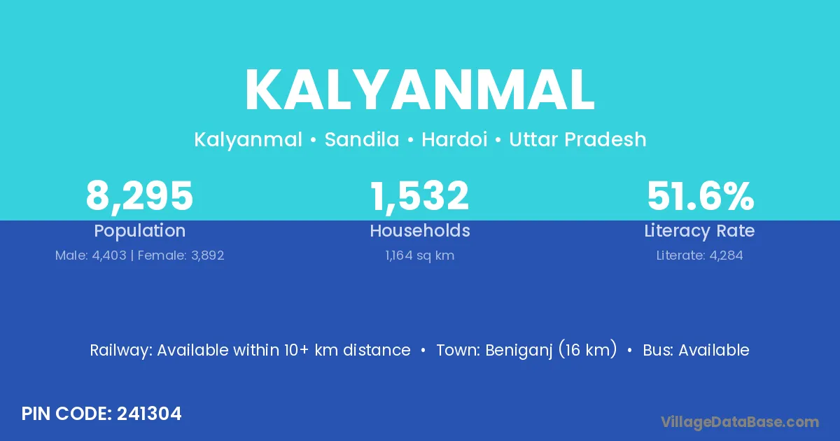 Beniganj (16 km) is the nearest town to Kalyanmal village for major economic activities and is located approximately 16 km away.
