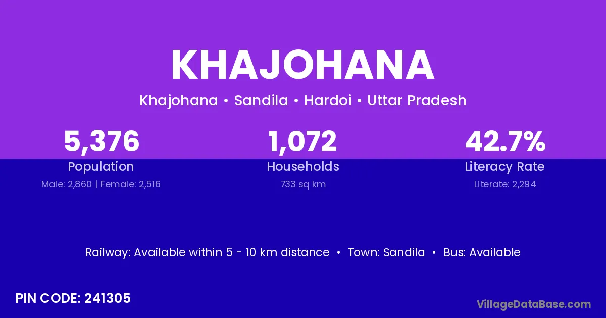 According to Census 2011 information, the village code of Khajohana village is 241305.