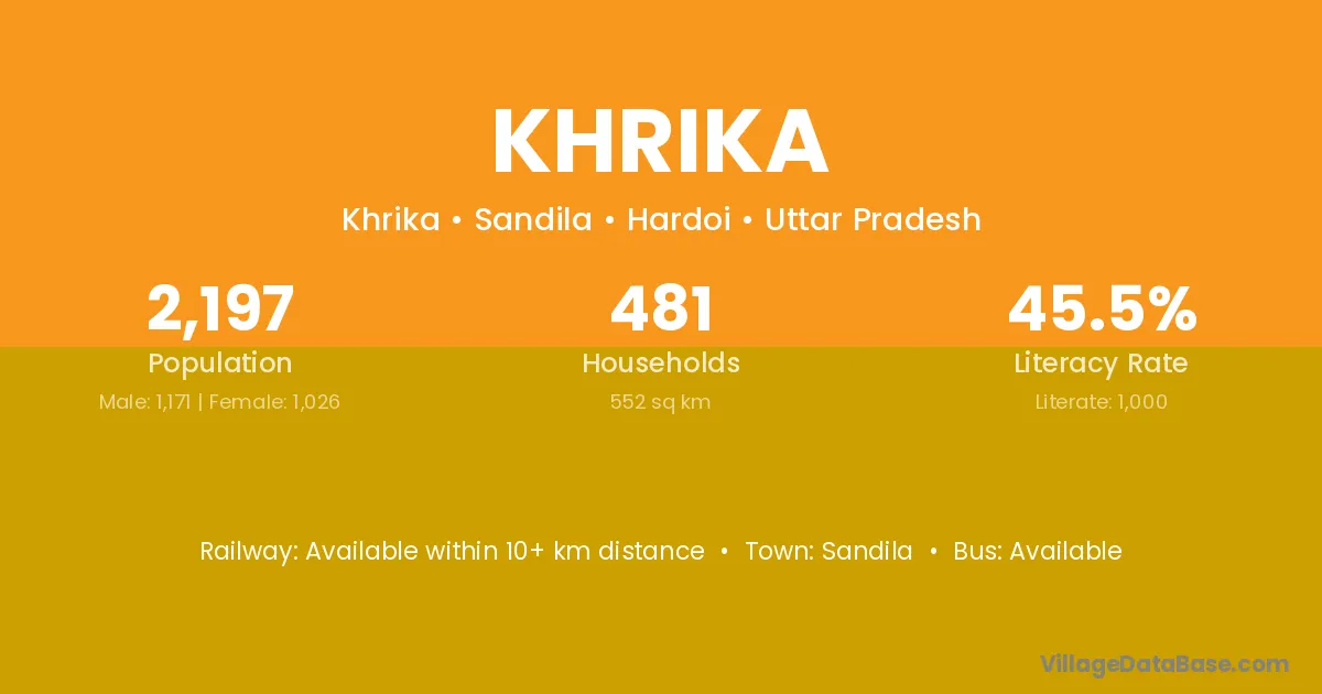Khrika village has a total population of 2,197 people, of which 1,171 are males and 1,026 are females.