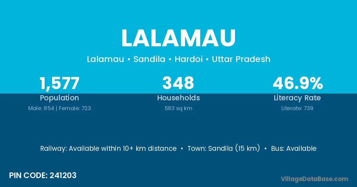 Sandila (15 km) is the nearest town to Lalamau village for major economic activities and is located approximately 15 km away.