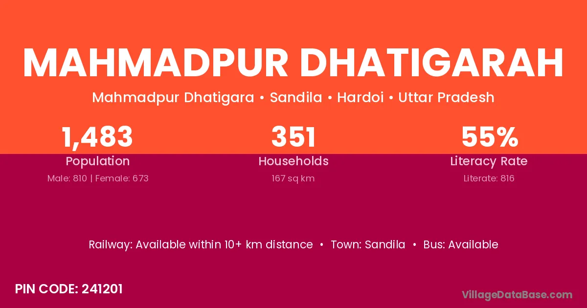 Sandila is the nearest town to Mahmadpur Dhatigarah village for major economic activities