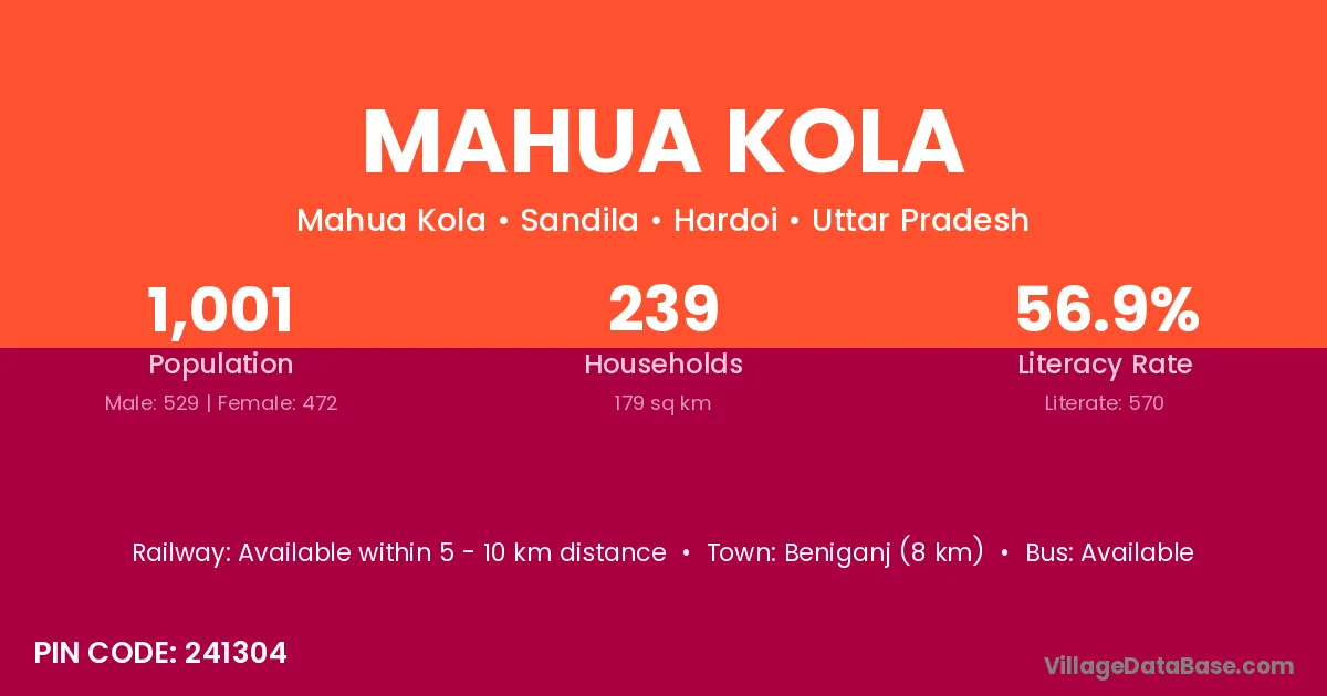 Beniganj (8 km) is the nearest town to Mahua Kola village for major economic activities and is located approximately 8 km away.