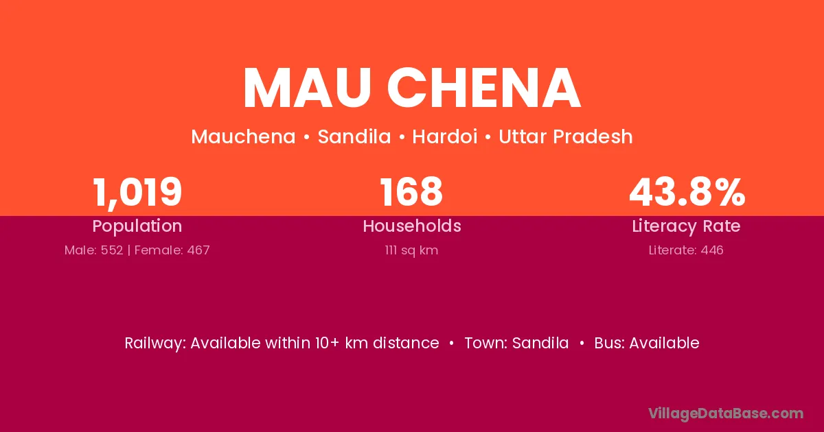 Mau Chena village has a total population of 1,019 people, of which 552 are males and 467 are females.