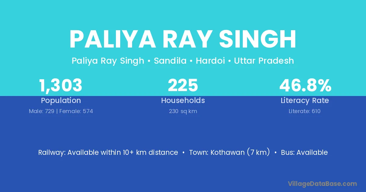 Paliya Ray Singh village has a total population of 1,303 people, of which 729 are males and 574 are females.