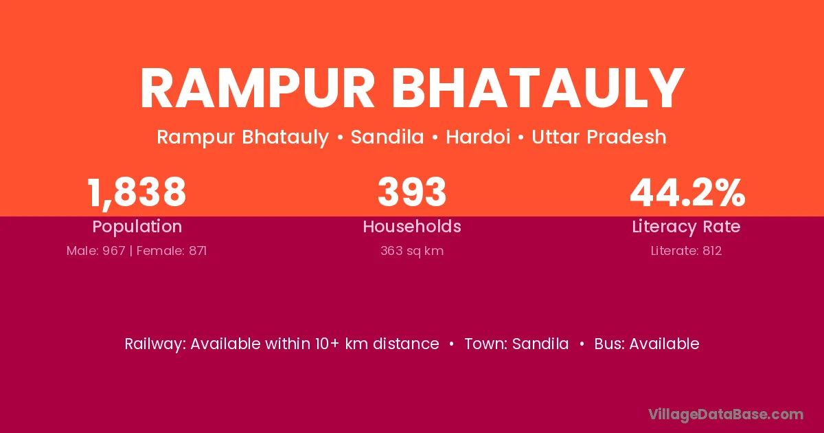 Rampur Bhatauly village has a total population of 1,838 people, of which 967 are males and 871 are females.