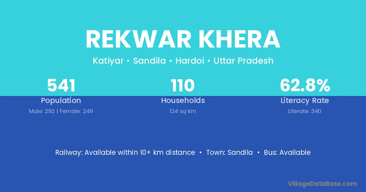 Rekwar Khera village has a total population of 541 people, of which 292 are males and 249 are females.