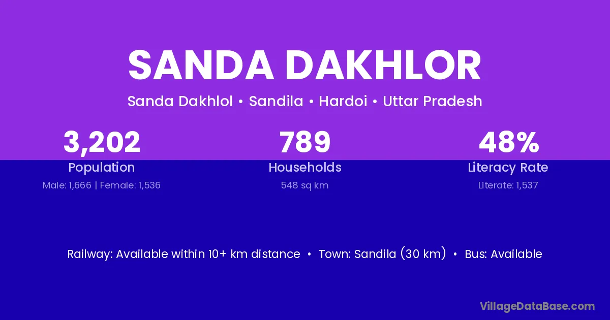 Sandila (30 km) is the nearest town to Sanda Dakhlor village for major economic activities and is located approximately 30 km away.