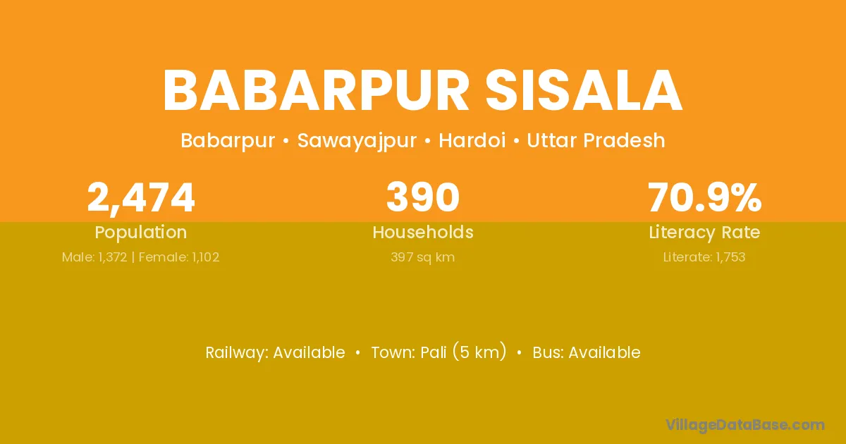 Pali (5 km) is the nearest town to Babarpur Sisala village for major economic activities and is located approximately 5 km away.