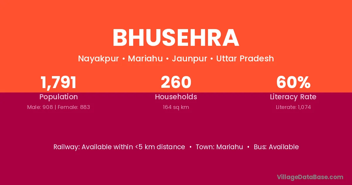 There are approximately 337 households in Bhusehra village.