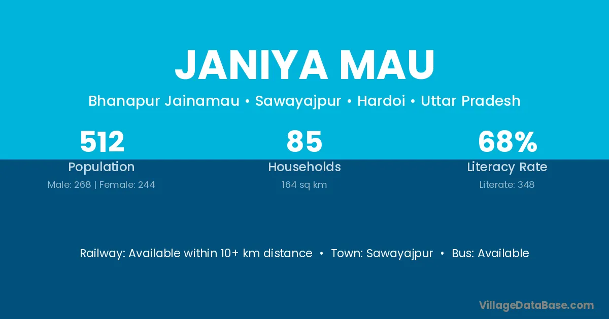 Janiya Mau village has a total population of 512 people, of which 268 are males and 244 are females.