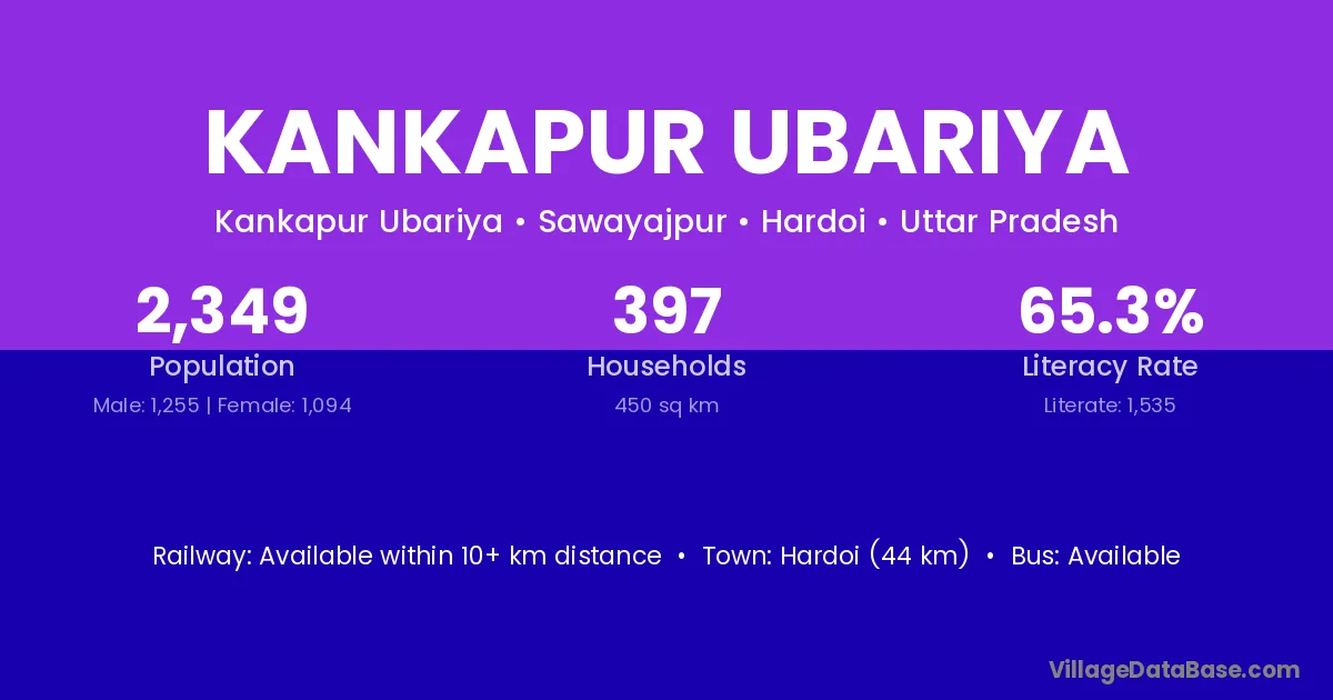 Hardoi (44 km) is the nearest town to Kankapur Ubariya village for major economic activities and is located approximately 44 km away.