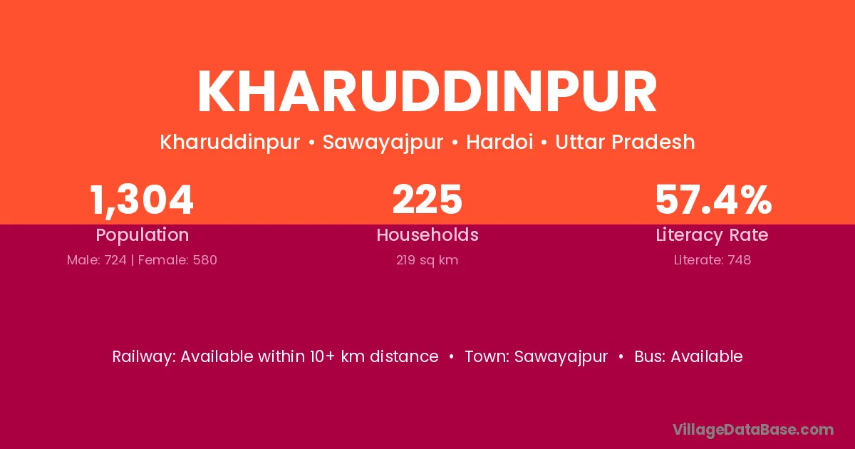 Kharuddinpur village has a total population of 1,304 people, of which 724 are males and 580 are females.