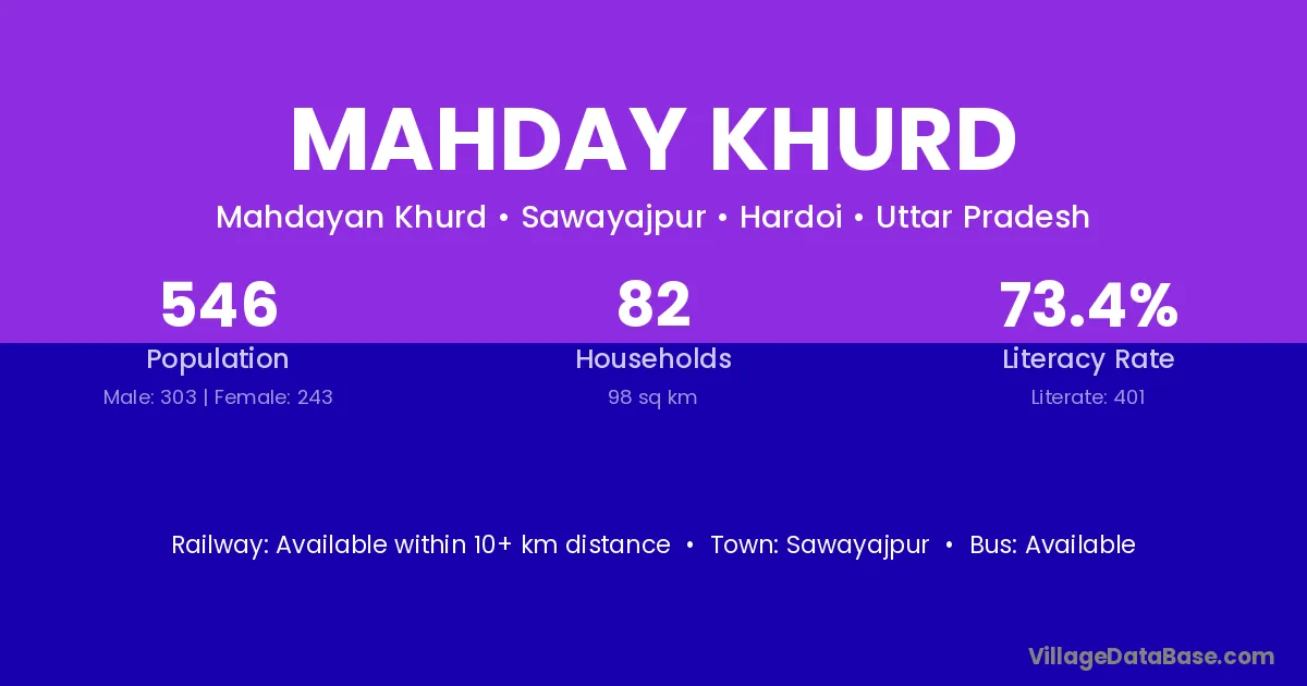 Sawayajpur is the nearest town to Mahday Khurd village for major economic activities