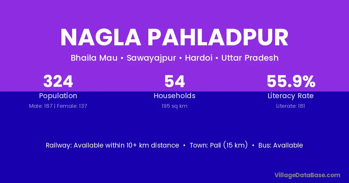 Pali (15 km) is the nearest town to Nagla Pahladpur village for major economic activities and is located approximately 15 km away.