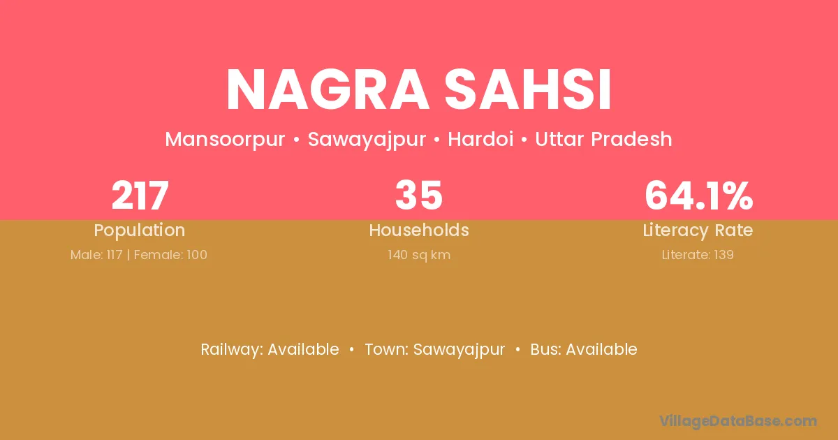 Sawayajpur is the nearest town to Nagra Sahsi village for major economic activities