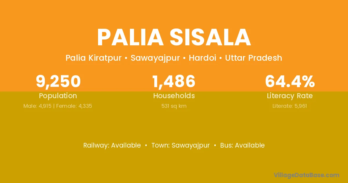 Palia Sisala village has a total population of 9,250 people, of which 4,915 are males and 4,335 are females.