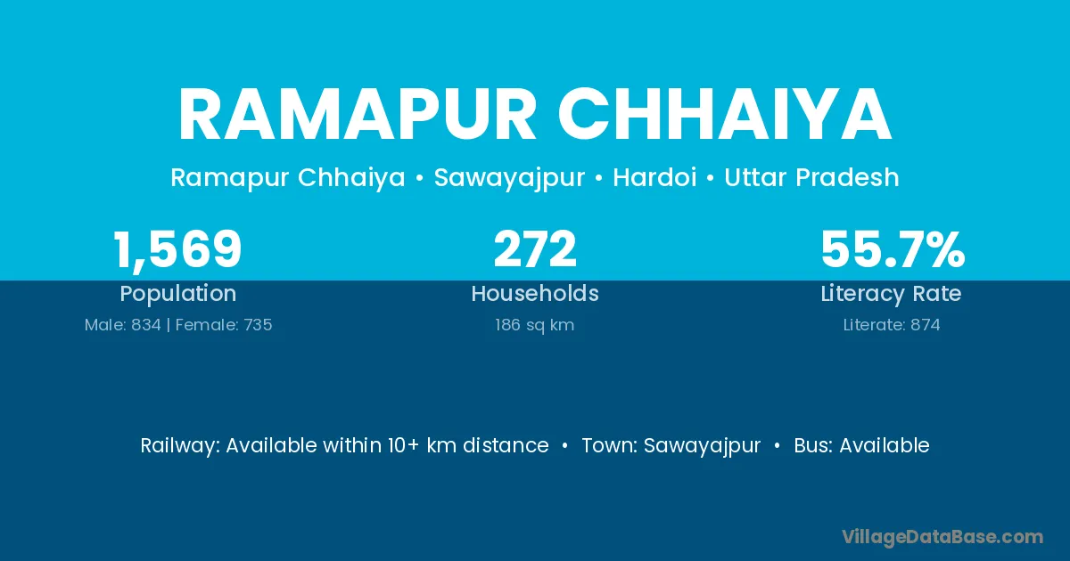 Ramapur Chhaiya village has a total population of 1,569 people, of which 834 are males and 735 are females.