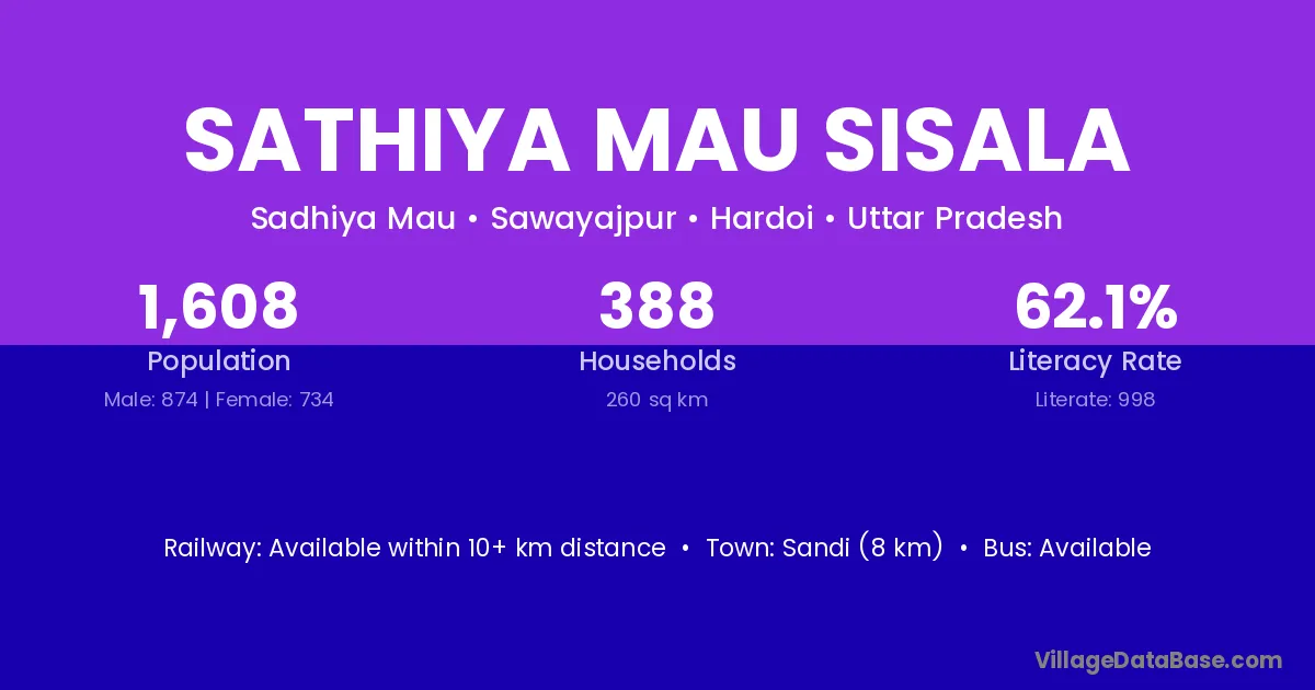 Sathiya Mau Sisala village has a total population of 1,608 people, of which 874 are males and 734 are females.
